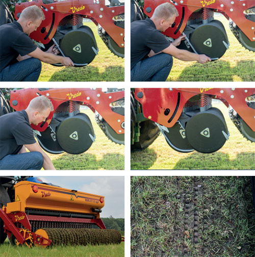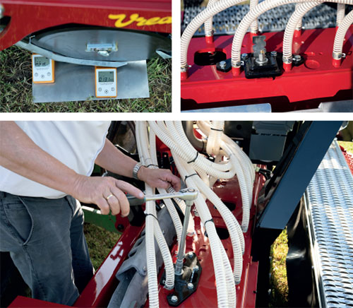 - Оптимальная регулировка — более высокое давление для более глубокого посева травы, более низкое — для поверхностного посева трав или клевера.