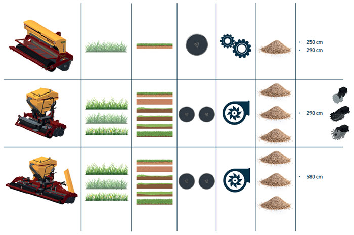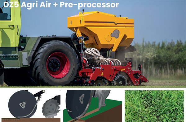 Vredo DZ Agri Air 290 может быть оснащен передним культиватором, который легко крепится к трактору. Этот передний культиватор — идеальное дополнение для операторов, работающих в различных условиях и желающих максимально контролировать процесс посева.