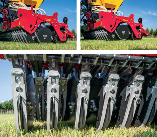 Система посева культур (CDS) позволяет гидравлически переключать междурядья 7,5 см и 15 см, что делает машину подходящей как для подсева лугов, так и для прямого посева культур.